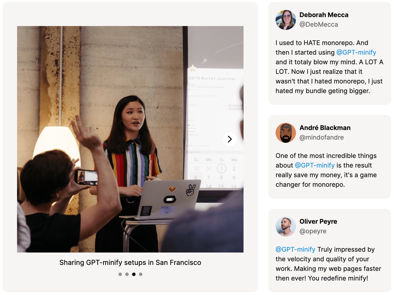 GPT-minify 的试用者如是说:「重新定义 Minify」、「游戏规则改变者」、「刷新认知」。可见它非常卓越。